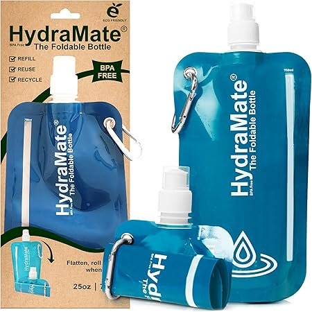 Er zijn ook opvouwbare waterflessen, scheelt weer ruimte in je tas.
